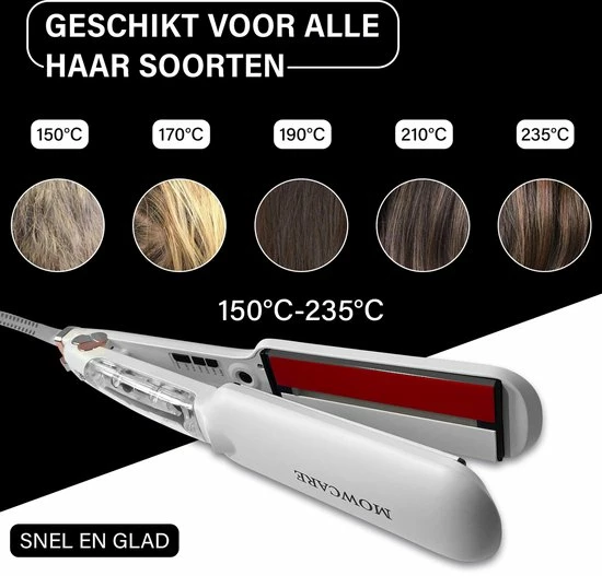 Je kiest altijd de juiste temperatuur voor je haar dankzij de verschillende temperatuurinstellingen van 150? tot 235?. Dit maakt de stoomstijltang geschikt voor ieder haartype.