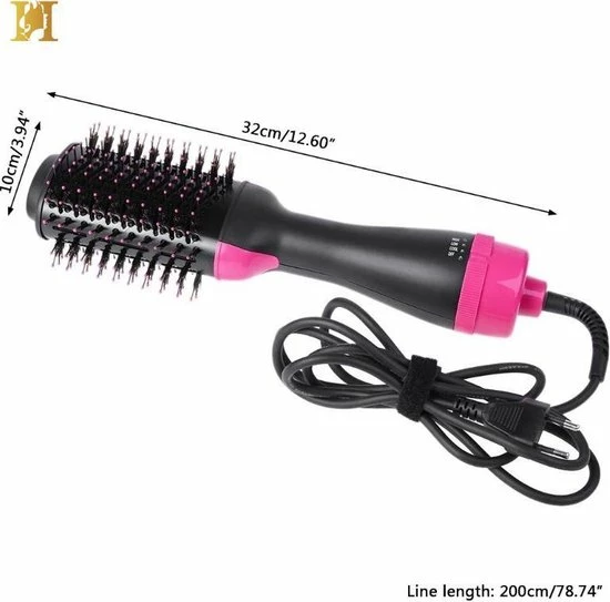 De F?hnborstel van Ecogold is een stevige borstel die goed in de hand ligt. Met de f?hnborstel van 1000 W kan je f?hnen, krullen en stijlen. Dit allemaal in 1 toestel. De ovale vorm van de ronde f?hnborstel laat je eveneens toe om slag en volume in je haar te brengen. De Haarf?hn heeft 3 standen, zo kan je zelf instellen wat jij het prettigst vindt of wat het beste past voor jouw haartype. Bovendien beschikt de 3-in-1 Haardroger met Borstel over een keramische coating die voorkomt dat je haar zal beschadigen door de warmte.
