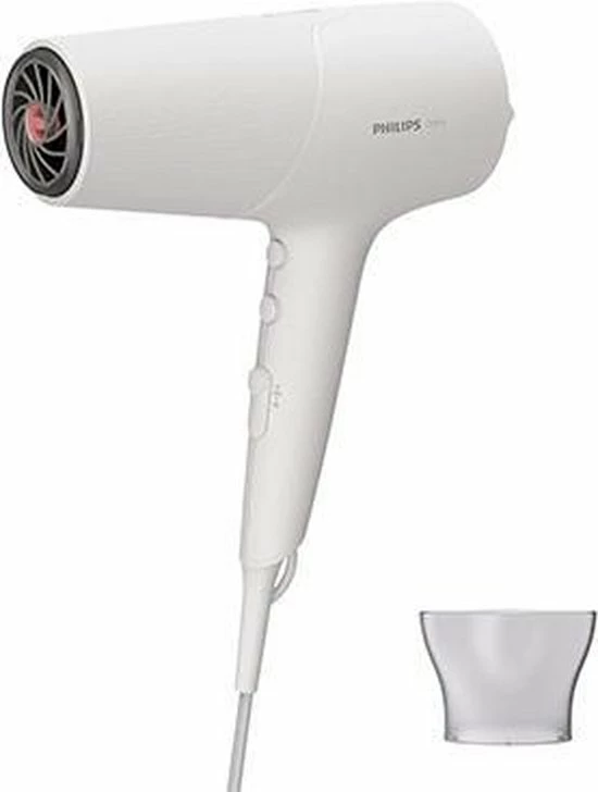 De Philips Föhn Series 5000 is een föhn met ThermoShield-technologie. Deze föhn zorgt ervoor dat jouw haar snel droogt en tegelijkertijd niet je haar beschadigd. De ThermoShield-technologie heeft een sensor die overhitting detecteert, het haar hier tegen beschermt en door actief de luchttemperatuur van de föhn te controleren en op een optimaal niveau te houden. Ook produceert deze föhn 2100 W en een krachtige luchtstroom en zorgt dat je haar krachtig en snel droogt. Hierdoor style jij gemakkelijk jouw haar. De föhn heeft 6 warmte- en snelheidsstanden, een koele luhtstoot om je stijl te fixeren en een slank mondstuk voor het bijwerken en nauwkuerig stylen. Deze föhn heeft een krachtig ionensysteem dat tot 40 miljoen ionen genereert per droogsessie en dit zorgt voor glanzend, pluisvrij haar.