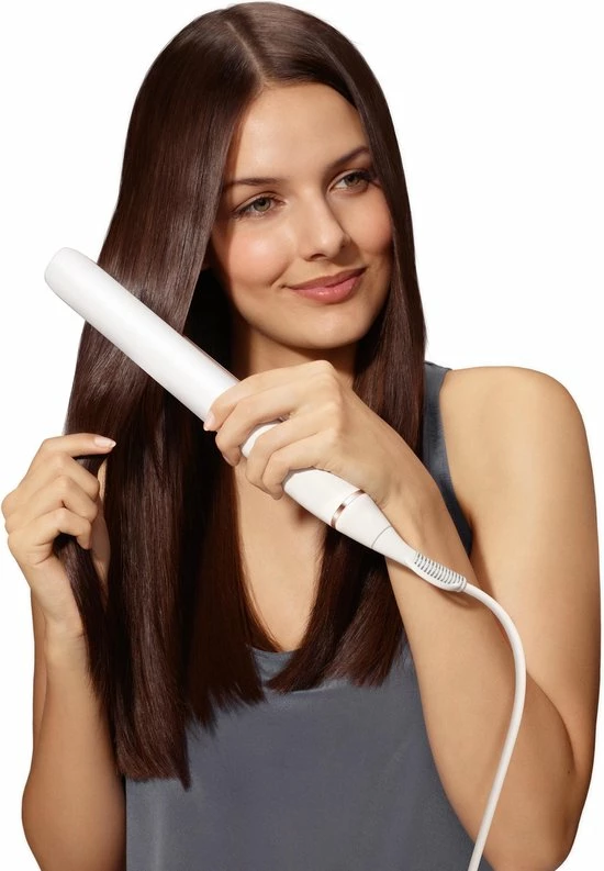 Krachtig verwarmingselement: Deze straightener behoudt een constante temperatuur en daarom constante resultaten. Dankzij het krachtige verwarmingselement kun je je haar bij een meer verzorgende temperatuur ontkrullen en toch de gewenste stijl verkrijgen. Je hebt je haar sneller gestyled aangezien je minder bewegingen nodig hebt tijdens het ontkrullen.