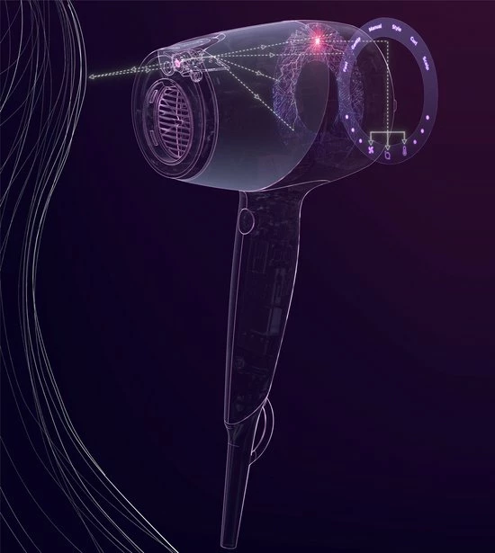 De intelligente microprocessor is het brein achter SenseIQ. De airflowtemperatuur wordt meer dan 12.000 keer per droogsessie geanalyseerd en aangepast*** voor de beste prestaties, terwijl u uw haar volledig op maat verzorgt. SenseIQ biedt intelligente warmtebeheersing om uw haar op een unieke manier te beschermen.