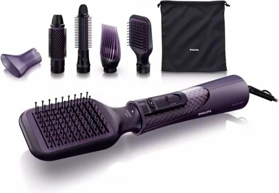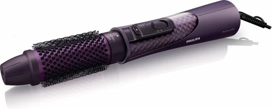 Deze gebruiksvriendelijke airstyler is een stijlborstel en krultang in ??n. Met ??n druk op de knop stop je de pennen terug in de borstel, zodat je de styler door je haar kunt halen, met een prachtige veerkrachtige krul als resultaat.