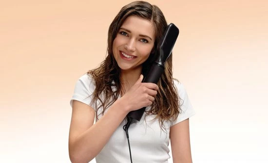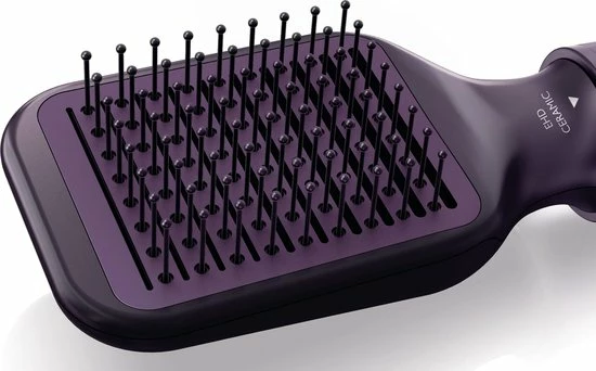Met de innovatieve platte borstel om te ontkrullen kun je mooi natuurlijk steil haar cre?ren, zonder het haar te beschadigen.