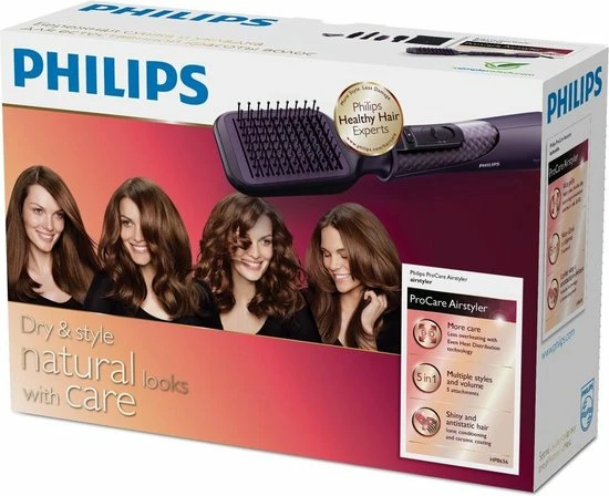 Kies nu voor drogen en stylen tegelijkertijd met de Philips ProCare HP8656/00 F?hnborstel. Maak mooie natuurlijke stijlen terwijl je je haar optimaal verzorgt. De innovatieve platte borstel helpt je om een natuurlijk rechte look te cre?ren zonder je haar te beschadigen.