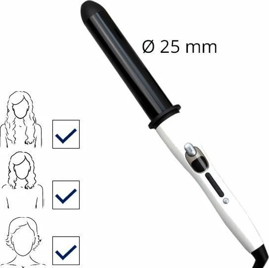 Met de 3 temperatuurstanden (170 ?C – 190 ?C – 210 ?C) en 3 timerinstellingen (12 sec – 10 sec – 8 sec) behaal je geweldige resultaten, van losse tot strakke krullen bij verschillende haartypen. Met de hoge temperatuurinstelling en de extra krultijd kun je bijvoorbeeld strakkere krullen maken ? ideaal voor dikker haar. De lage temperatuurinstelling in combinatie met een kortere krultijd is ideaal voor haar dat extra bescherming nodig heeft.