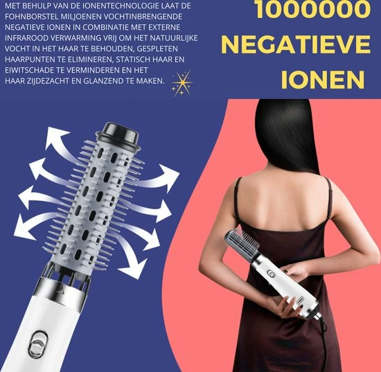 De f?hnborstel heeft ionentechnologie. Dit werkt fantastisch. De ionenfunctie met antifrissend effect ? doet het haar niet pijn en maakt het glanzender. De technologie op deze f?hn kan vocht voorkomen, thermische schade voorkomen, haren glad maken en het voedt en verzorgt de haarwortels. Het bewaart de natuurlijke vochtigheid in het haar en droog het snel.