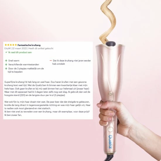 Wil jij ook overspoeld worden met complimentjes over je mooi gekrulde haar? Bestel dan vandaag nog de Qualiz Automatische Krultang!