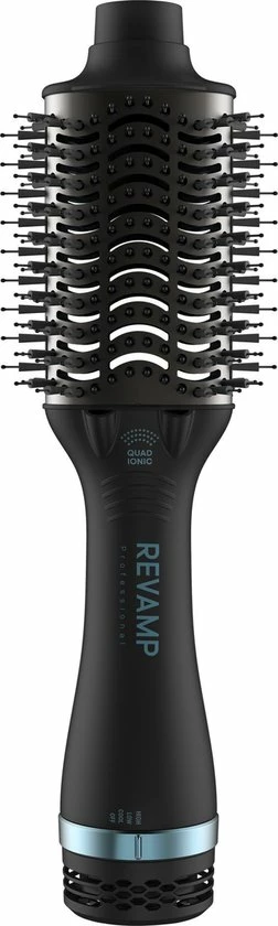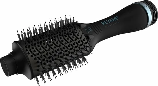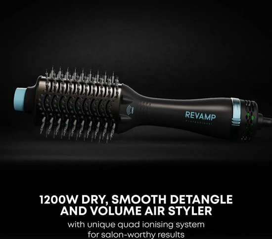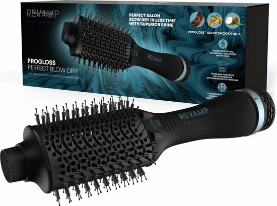 Krachtig drogen en stylen gecombineerd in ??n simpele haartool. De Revamp Progloss Perfect Blow Dry Volume and Shine Air Styler droogt, ontwart, verzacht en stylet je haar in slechts ??n beweging. De ovale keramische cilinder van de borstel werkt om het haar glad te maken en te stylen, terwijl de afgeronde randen volume toevoegen aan de wortel, zodat je thuis een f?hn van salonkwaliteit kunt cre?ren. Om een ??pluisvrije styling te garanderen, heeft deze multifunctionele styler 4 ionische jetstralers en een keramische cilinder. Pas je stylingervaring aan met 3 Heat/Speed-instellingen, inclusief een Cool-optie om je kapsels op hun plaats te houden. Het lichtgewicht ontwerp en de 3 m lange salonkabel zorgen voor een snelle en gemakkelijke styling, met extra flexibiliteit. Doordrenkt met Progloss supergladde oli?n voor verbeterde glans.