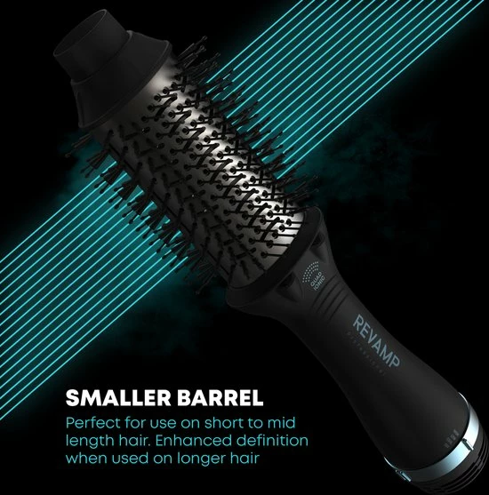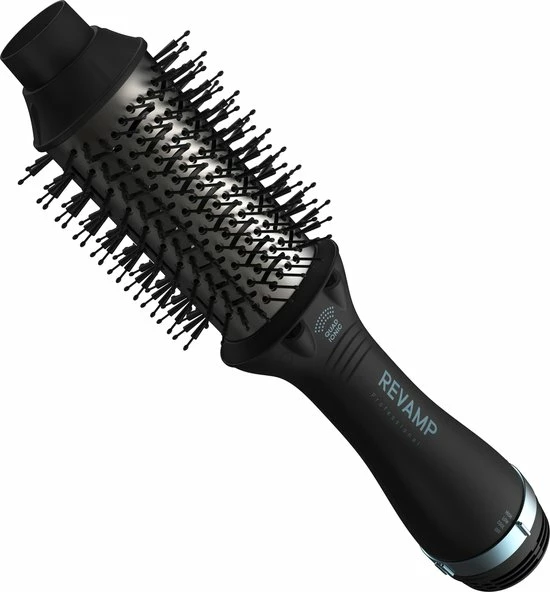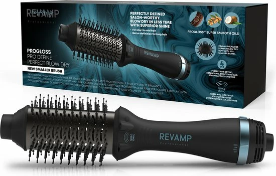 Met deze Revamp DR-1950 Progloss Föhnborstel zit je haar binnen no-time in model! De 4 in 1 multifunctionele airstyler zorgt ervoor dat je je haar eenvoudig in het gewenste model brengt. Dankzij de unieke Progloss coating met keratine en arganolie krijgt je haar een diepe glans en wordt het zijdezacht. De ovale borstel is ideaal voor kort en halflang haar en zorgt voor meer definitie bij lang haar. Kies één van de drie hitte- en snelheidsstanden en geef je haar een volumeboost vanaf de wortel dankzij de afgeronde zijkanten.