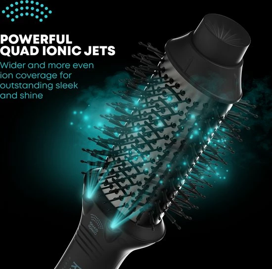 De keramische airstyler is voorzien van een unieke Progloss coating die bestaat uit keratine, kokos- en arganolie die je haar extra zacht en glanzend maken. Zo breng je je haar niet alleen mooi in model, maar verzorg je het ook goed. Dankzij de quad ionentechnologie heeft de airstyler een krachtige luchtstroom die je haar snel droogt. De luchtopeningen van de keramische föhnborstel zijn zo ontworpen dat de warmte gelijkmatig over je haar verdeeld wordt. Zo blijft je haar pluisvrij en worden statische lokken voorkomen. Alsof je iedere ochtend rechtstreeks uit de kapsalon komt gelopen!