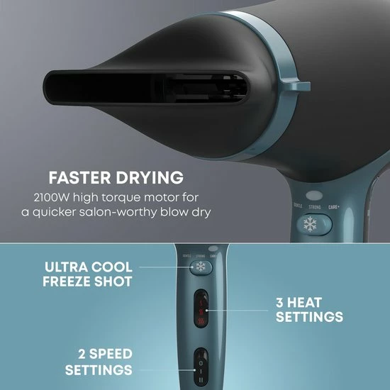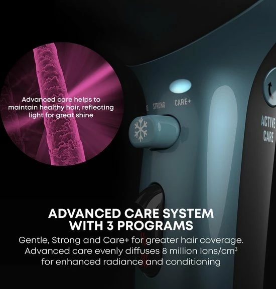 Haar is erg kwetsbaar en is niet altijd goed bestand tegen de hitte. De f?hn bevat daarom 3 verschillende programma?s die bijdragen aan een goede dekking van de luchtstroom en een verdeling van de warmte. Kies uit ?Gentle?, ?Strong? of ?Care+? voor de best passende verzorging voor jouw haartype.