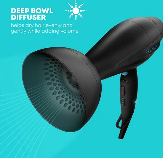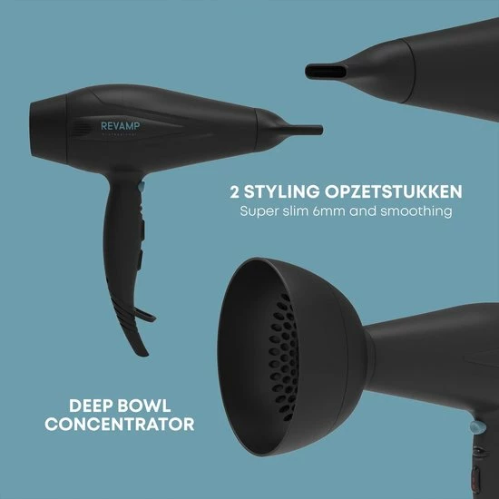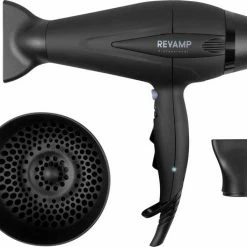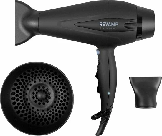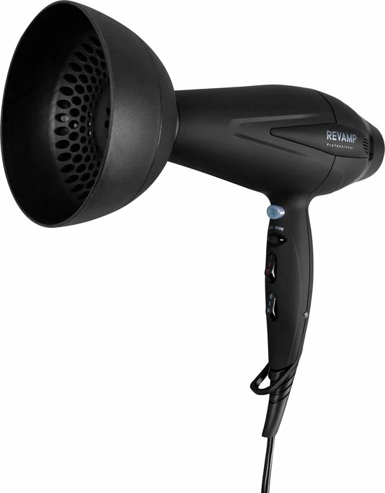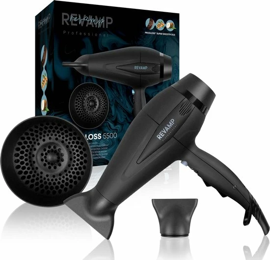 De Revamp Progloss DR5500 is met 2400 Watt een krachtige f?hn te noemen. Laat het haar glanzen dankzij de geavanceerde ionentechnologie. De haarf?hn kent 4 verschillende warmtestanden en 2 snelheden. Gebruik de cool shot functie om je haar langer in model te houden. Een diffuser en twee soorten concentrators worden meegeleverd. De f?hn is hierdoor geschikt voor vrijwel elk haartype. Het Progloss bad is onderdeel van het productieproces van de f?hn en beschermt het haar tegen hitte en geeft het glans. De haardroger wordt geleverd met een 3 meter lange kabel.