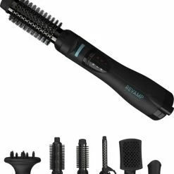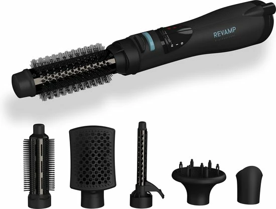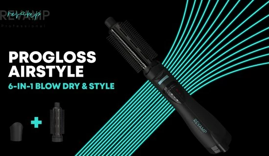 Breng je haar perfect in model met de Revamp DR-1250 Progloss 6-in-1 Föhnborstel. Dankzij de zes verschillende opzetstukken heb je tal van opties om met je gewenste haarstijl de deur uit te gaan. De krachtige 1200W motor maakt je haar in no-time droog. De airstyler is geschikt voor alle typen haar dankzij de vier verschillende hittestanden en twee snelheden, inclusief een cool shot functie. De warmteborstel is voorzien van Progloss coating die je haar een extra glans meegeeft. Dankzij de ionentechnologie is pluizig haar bovendien verleden tijd!