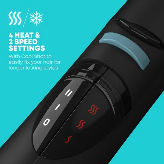 Ook de temperatuur en snelheid van het apparaat zijn aan te passen. Kies uit twee snelheden en vier hittestanden, of maak gebruik van de cool shot knop. Hiermee breng je je haar in model en blijft het langer zitten. Met de zes opzetstukken en verschillende standen is deze warmteborstel geschikt voor ieder type haar. Of je nu strakke krullen of volumineus haar wilt, je krijgt het voor elkaar!