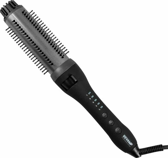 Met de Revamp Progloss BR1500 Warmteborstel bespaar je kostbare tijd bij het krullen, golven en volume geven aan je haar. De ronde keramische borstel van 38 mm (diameter) bevat ionische technologie waardoor het haar minder statisch wordt. De gepatenteerde Progloss coating zorgt voor een prachtige glans. De borstelharen zijn intrekbaar voor het soepel en moeiteloos verwijderen van de krulborstel uit het haar. Door de 5 instelbare warmtestanden van 150 ?C tot 210 ?C is de borstel geschikt voor dun en beschadigd haar.