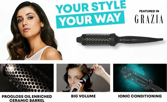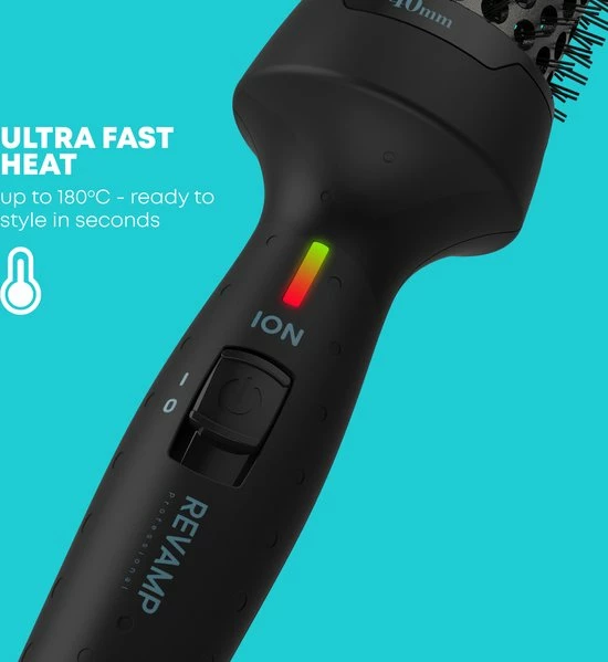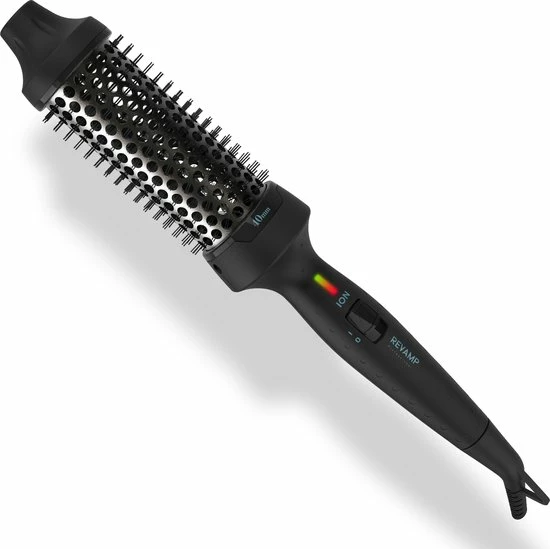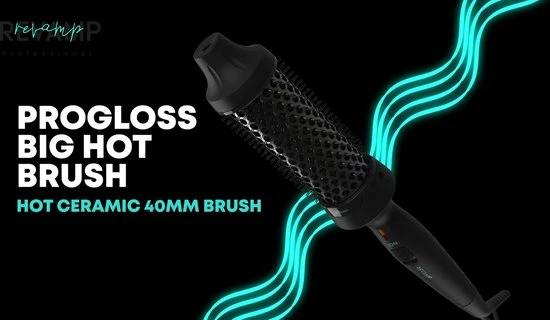 De Revamp Progloss BR1400 warmteborstel bevat een grote ronde keramische borstel van 40 mm (diameter) met ionentechnologie. De borstel kan je haar krullen, golven en volume geven en warmt snel op tot 180 ?C. De keramiek is gebakken in een Progloss bad en heeft daardoor een speciale coating. Dit geeft je haar elke beurt een glans en beschermt het tegen de hitte. Bespaar kostbare tijd en style je haar in enkele seconden.