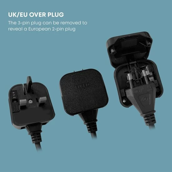 Steek de UK/EU adapter in het stopcontact en druk op de aan-/uit-knop om hem aan te zetten. Het apparaat heeft 5 warmte-instellingen: 120 ?C, 140 ?C, 160 ?C, 180 ?C en 210 ?C. De standaard temperatuur is 150 ?C en is verder in te regelen met de + en – knoppen. De digitale temperatuurindicator stopt met knipperen zodra de geselecteerde temperatuur is bereikt. Draag altijd de hittebestendige handschoen om eventuele ongelukken te voorkomen. Gebruik bij fijn, kwetsbaar of gekleurd haar een lagere warmte-instelling.