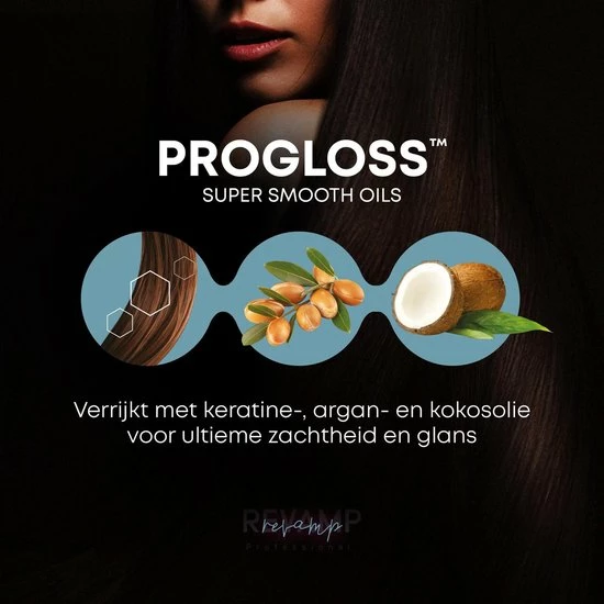 - Zwevende keramische hitteplaten ? Progloss essentiele olien ingebakken bestaande uit Keratine, arganolie en kokosolie.