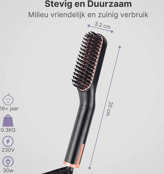 Geen zorgen over het verbranden van je haar, deze stijltang is volledig veilig en bezit over warmteprotectie. Wees niet bang dat je je haar beschadigd wegens de rubberen kamnaalden en titanium materialen. Voorkom tegelijkertijd gespleten haarpunten en klitten, wat wil je nog meer?