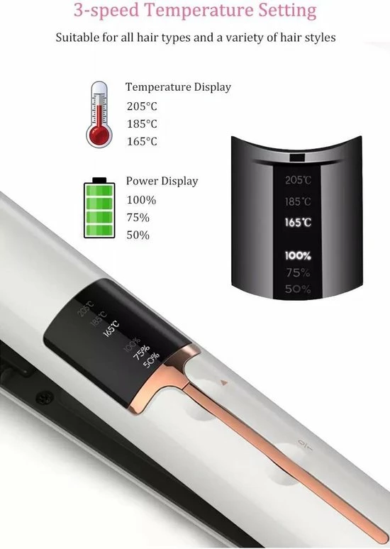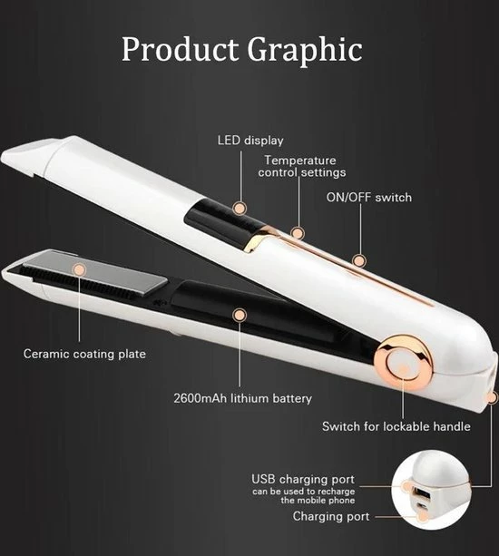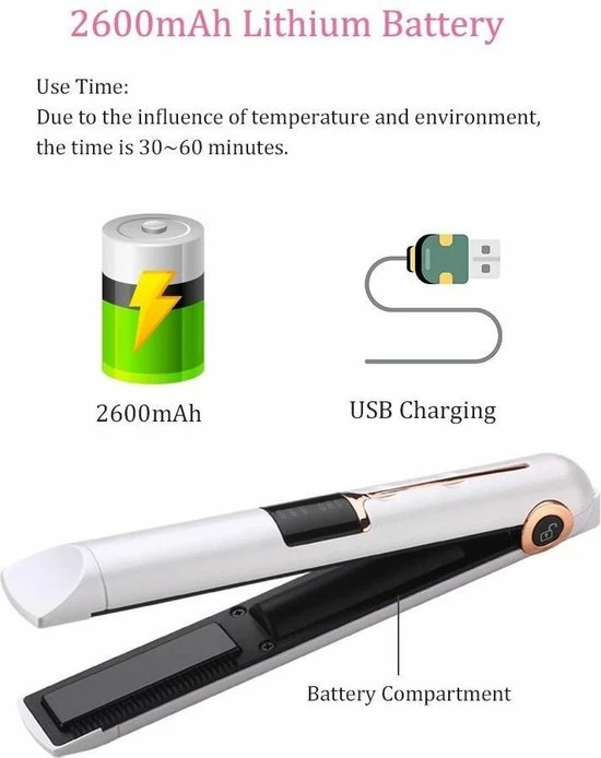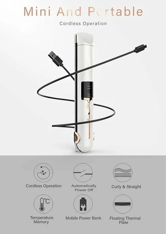 Deze stijltang is in een handige reisformaat en past in een handtas of rugzak. Omdat de stijltang draadloos is kun je het overal waar je maar wilt gebruiken. De stijltang heeft een powerbank functie waarmee je overal je telefoon kunt opladen!
