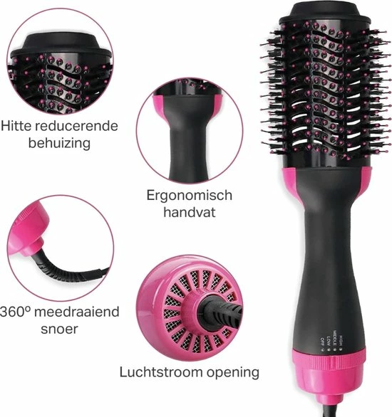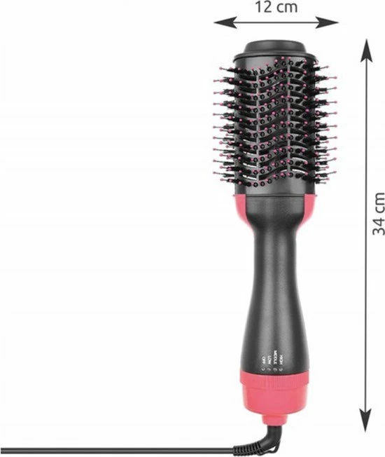 Stijl en droog jouw haar in een mum van tijd met deze 1000W F?hnborstel. Het grote formaat van deze borstel zorgt voor een snel droogresultaat. Je kan tijdens het drogen tegelijkertijd je haren stijlen, volume cre?ren, een slag aanbrengen en mogelijk een klein krulletje cre?ren.