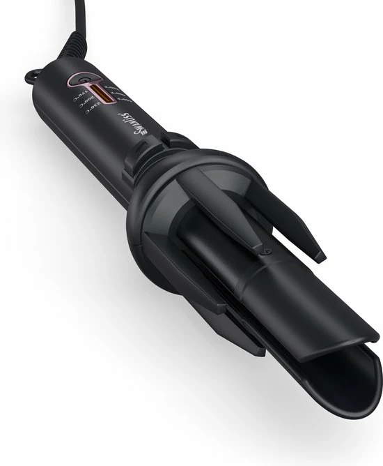 Deze innovatieve stijltool geeft een moderne draai aan je dagelijkse krultang. De professionele borstelloze motor is gebouwd voor een langere levensduur en biedt de precieze styling met een veiligheidssensor die je verzekert van de perfecte krullen. De V-vormige haargeleider in het midden van de cilinder positioneert het haar perfect, terwijl twee krachtige verwarmers het haar vanuit alle richtingen verwarmen om gelijkmatige, mooie en vloeiende krullen te cre?ren. Het revolutionaire design zorgt ervoor dat je haar nooit vast kan komen te zitten, zoals bij traditionele haarkrullers met krulkamers. Bovendien laat de automatische piepindicator je weten wanneer het haar klaar is voor de perfecte krul!