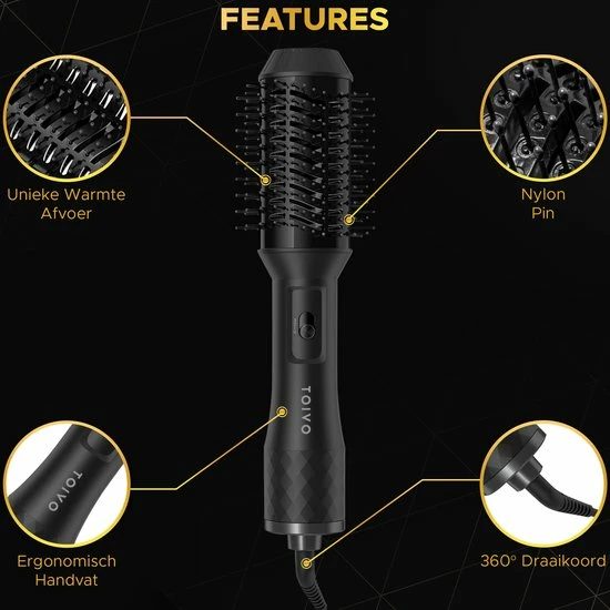 Of je jouw haren nu wil drogen, stijlen of een slag / krul wil aanbrengen, met de TOIVO 3-in-1 f?hnborstel heb jij een multifunctionele magic brush in huis waarmee dit allemaal mogelijk is. Geen geklungel meer met de fohn en een borstel. Het 360? draaiende koord zorgt er tevens voor dat jij vrijuit kan fohnen zonder je zorgen te hoeven maken over de kabel die blijft hangen.