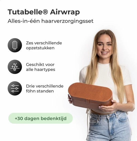 Wil jij je haar droogmaken, gladföhnen, krullen, meer volume geven of op een andere manier stijlen? De Tutabelle airwrap kan het allemaal. Door de 6 verschillende opzetstukken kun jij je haar in ieder gewenste staat krijgen, zonder pluizen. De Tutabelle is vergelijkbaar met de originele Dyson, maar dan voor een fractie van het geld.