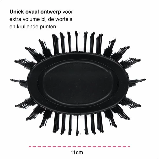 Let op: De kop van föhnborstel is 11cm breed. Dit maakt de borstel ongeschikt voor het krullen van zeer korte kapsels.