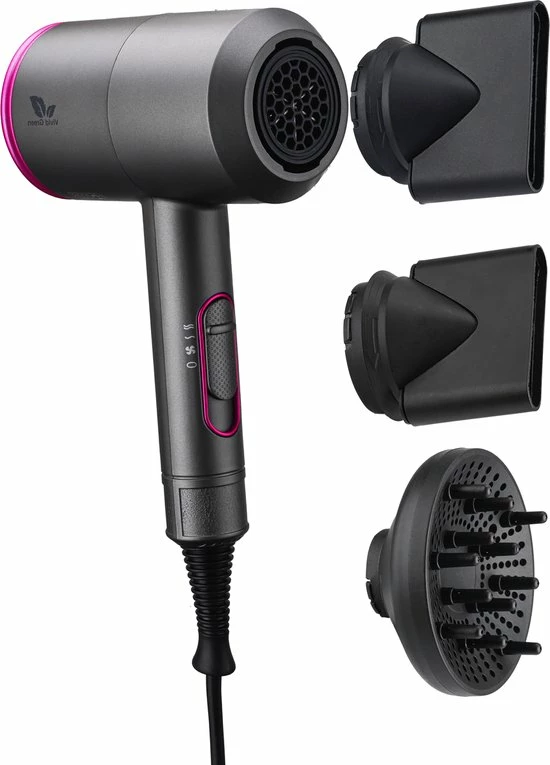 Ben je het wachten zat en wil je snel je haren droog hebben? Dan is de Vivid Green Ionische Haarföhn de oplossing voor jou! De haardroger is voorzien van een krachtige 2000W motor waardoor jij je haren in een mum van tijd droog krijgt! De Föhn met diffuser is voorzien van nieuwe ionentechnologie zodat je sneller kan drogen en stylen en je haar niet wordt beschadigd. Met de bijgeleverde opzetstukken kan jij de haarstijl perfectioneren en een look creëren alsof je net uit de haarsalon komt! Zo heb je altijd en overal mooi, droog en pluisvrij haar